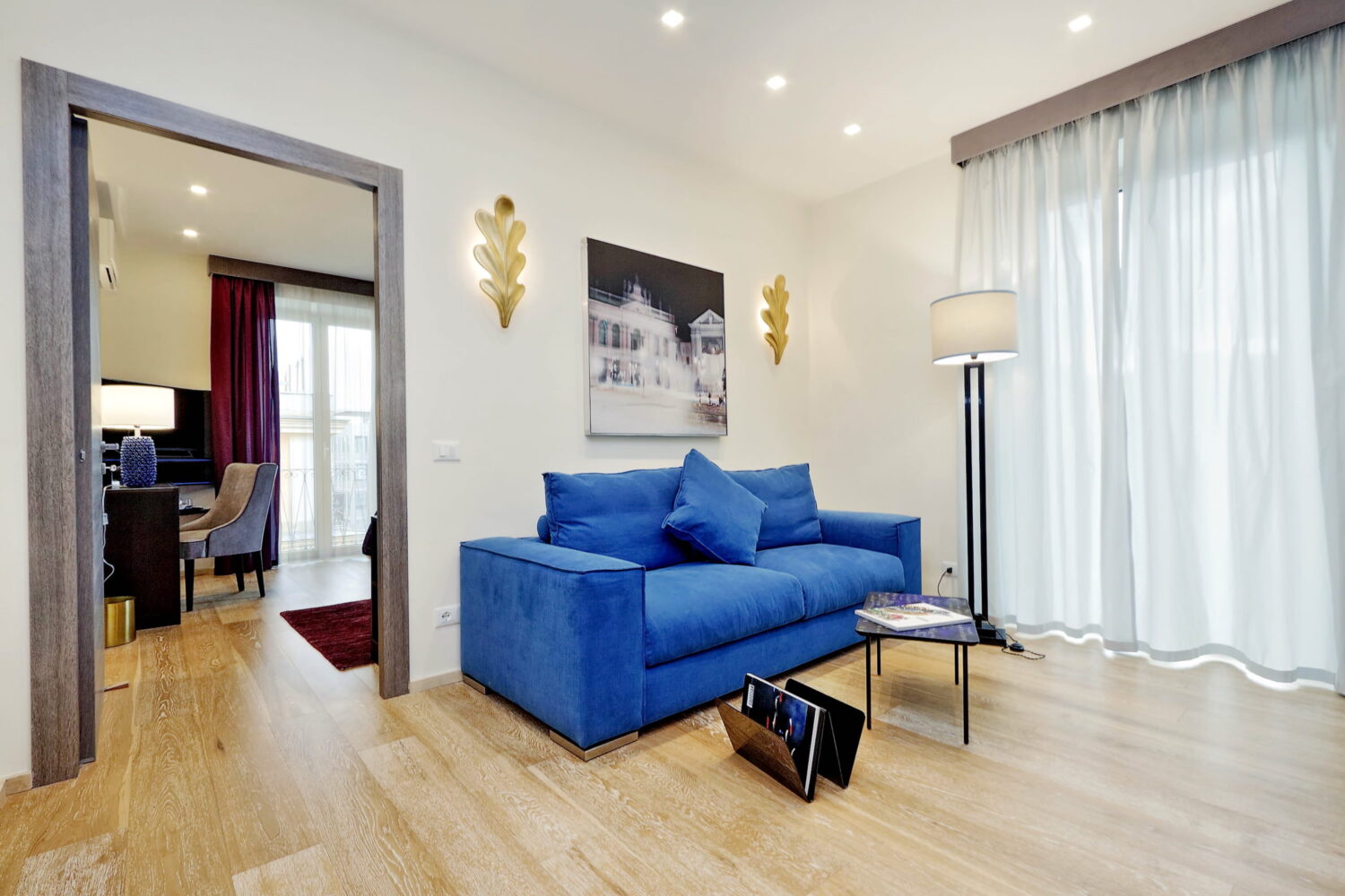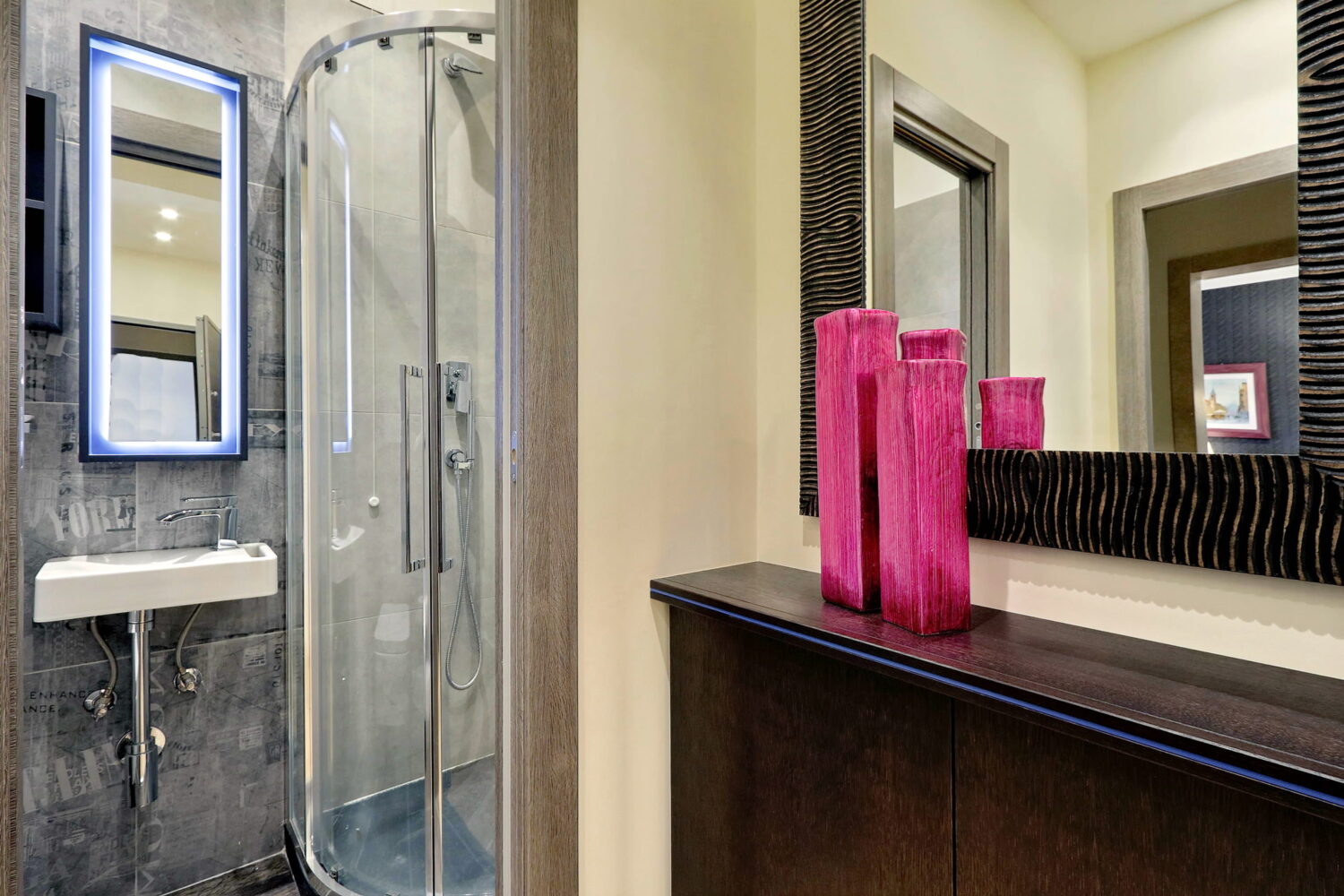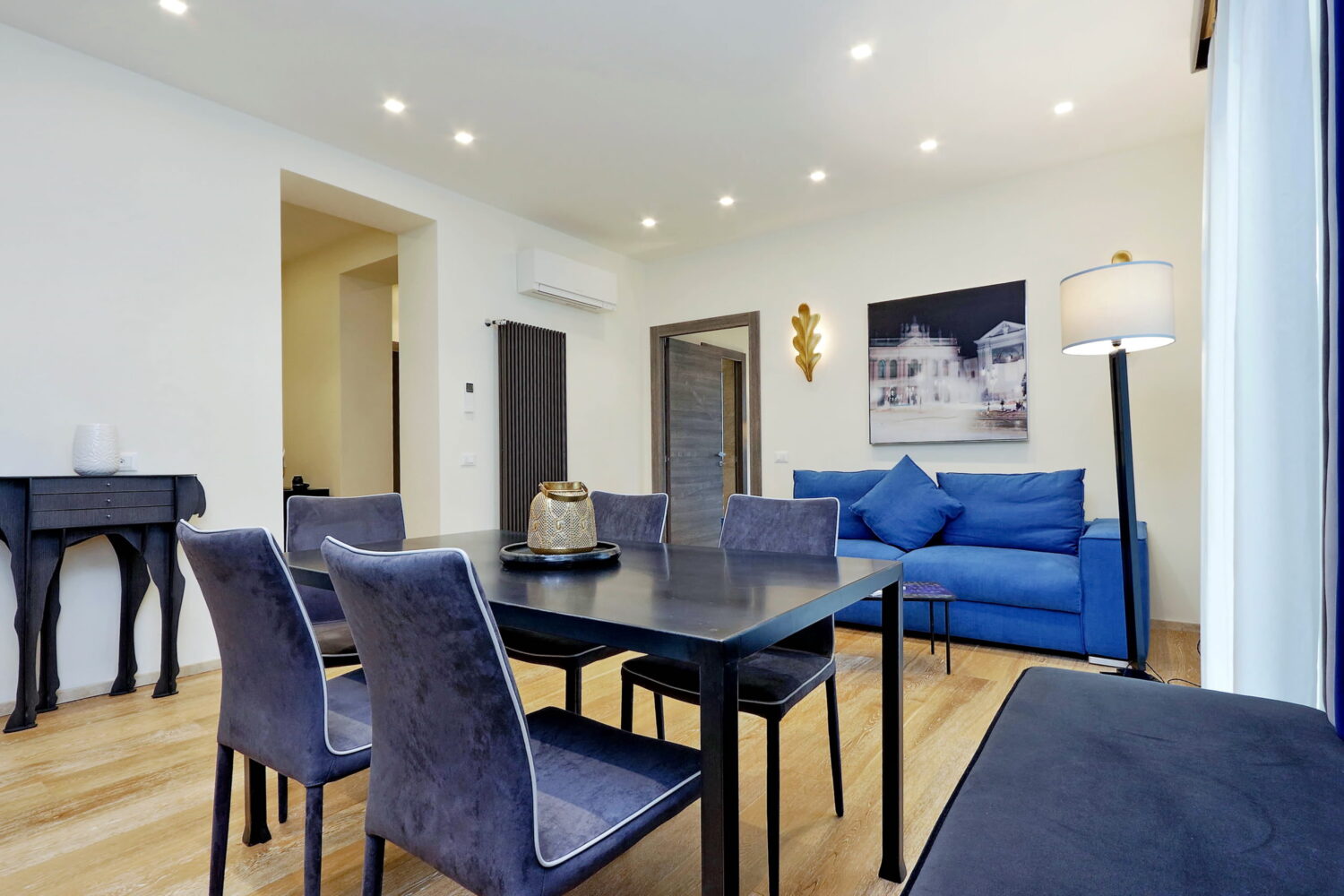 Bright, refined, modern and balconied 90 square meters three-room apartment, with elegant entrance in a historic corner building turning off into the heart of Via Veneto, the street of the dolce vita and seat of the most prestigious hotels in Rome such as Westin Excelsior, Marriott Flora, Via Veneto Hotel, Ambassadors, Majestic and others; located 80 meters from Porta Pinciana and Villa Borghese, the city’s most important park, 200 meters from Piazza Barberini, 10 minutes walking to the Spanish Steps, the Trevi Fountain and Piazza del Popolo.